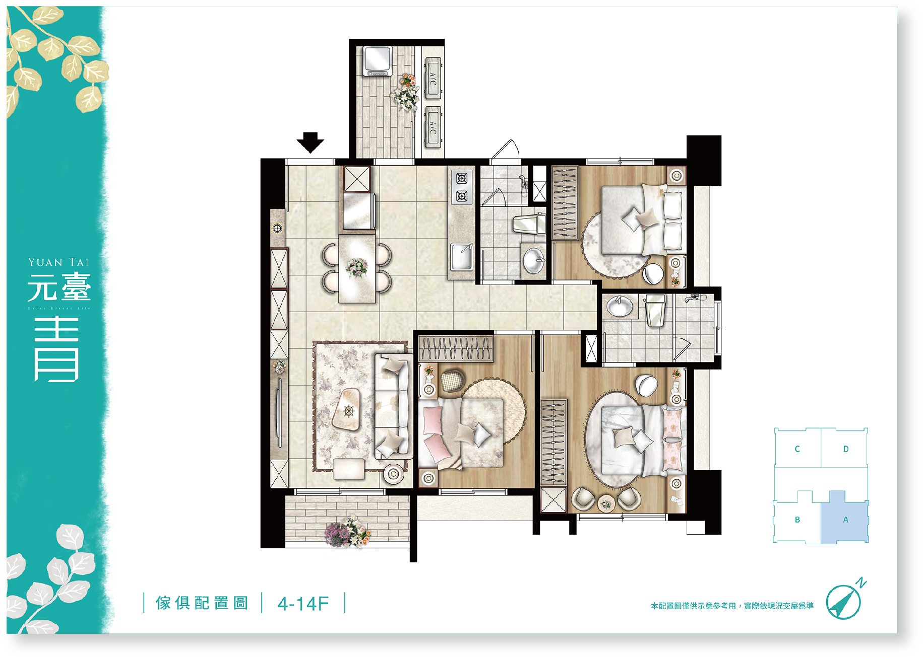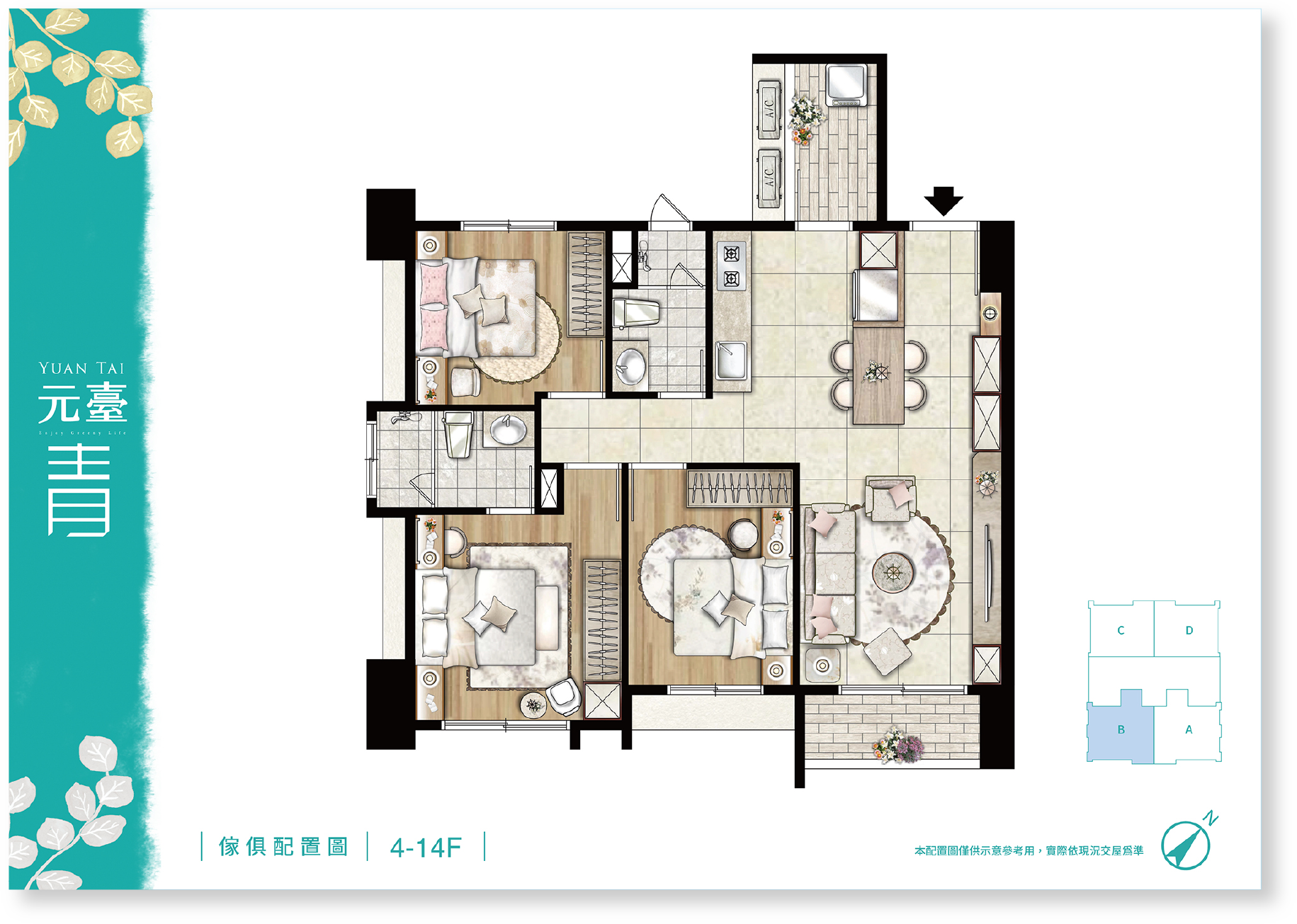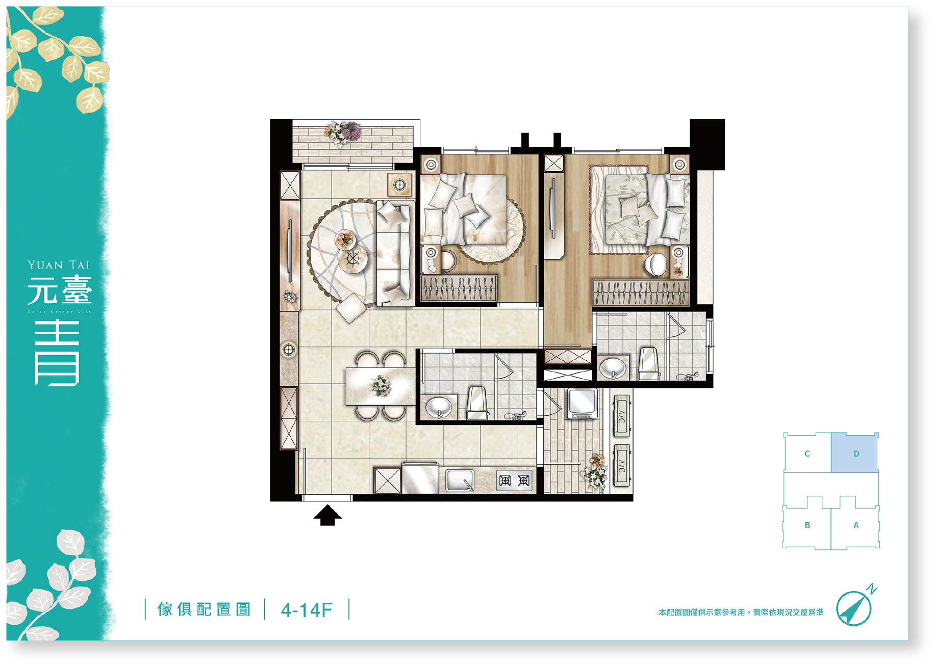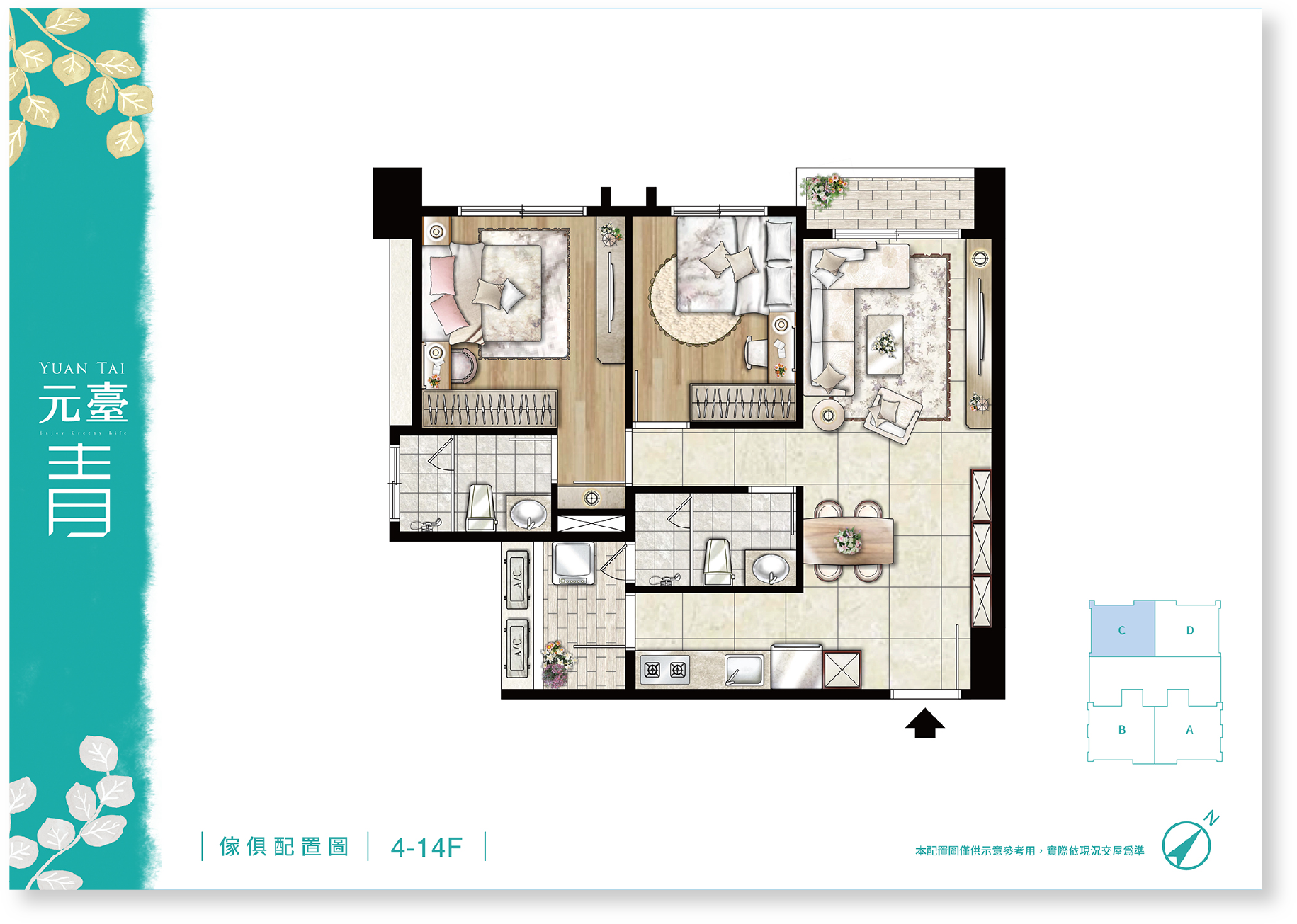 品味自然的健康空間,大2房無敵高坪效,稀有雙衛全開窗,每房都得放下雙人床,戶戶邊間雙面採光健康生活,為了家人,更該換間好房子,從此在家不僅是過日子,而是享受生活。